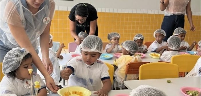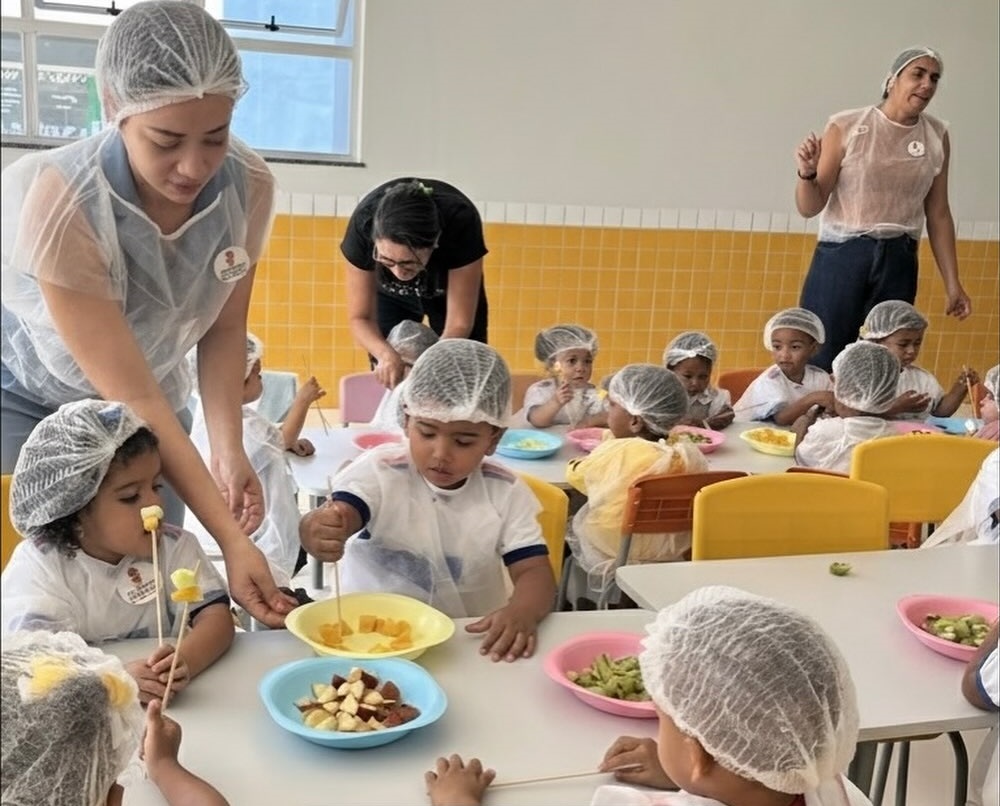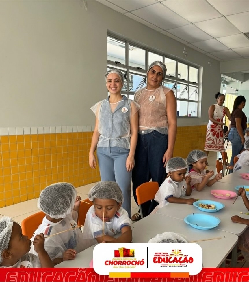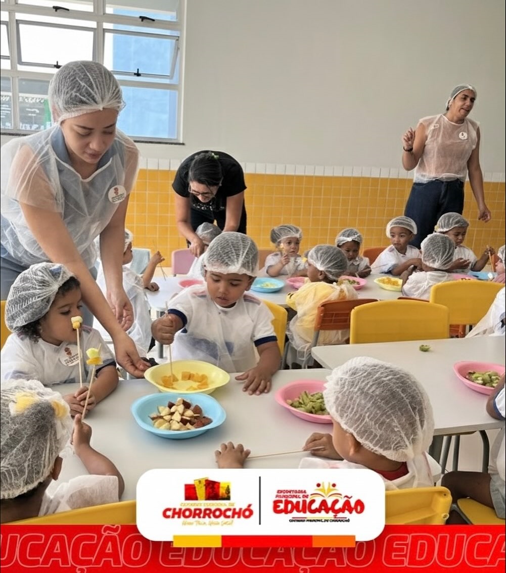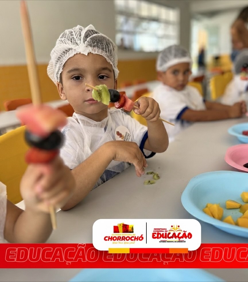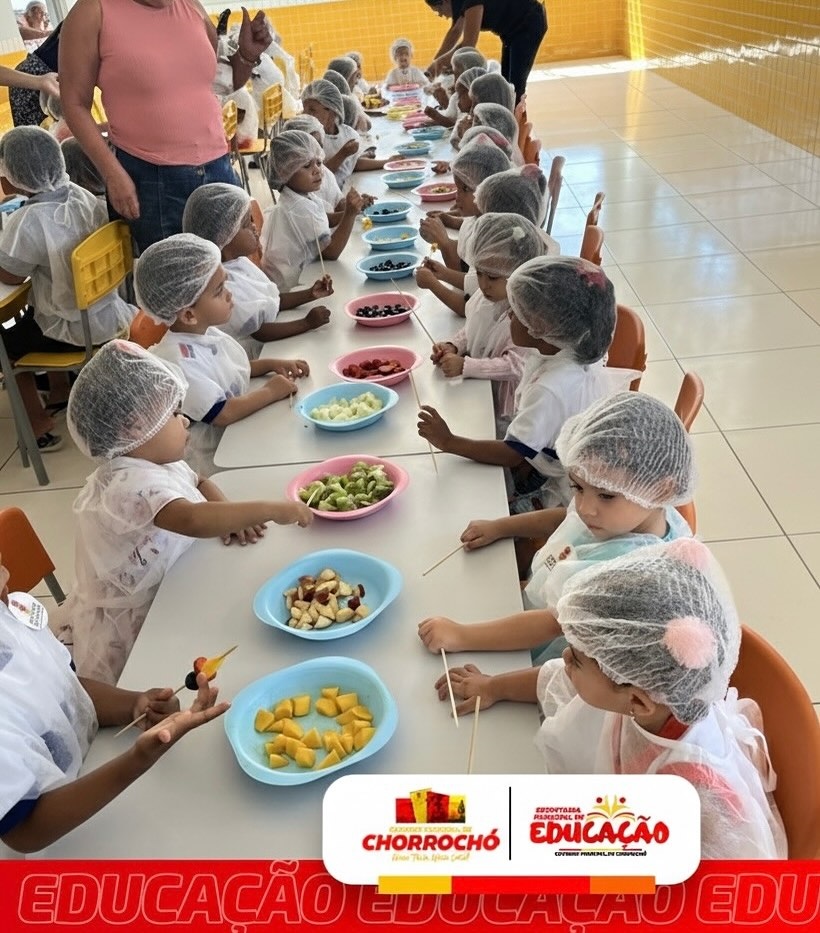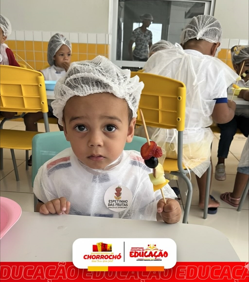A Prefeitura Municipal de Chorrochó através da Secretaria Municipal de Educação nesta quinta-feira (18/09/),a Creche Municipal Chapeuzinho Vermelho recebeu uma ação de Educação Alimentar e Nutricional. As nutricionistas Geisa Carvalho (PNAE) e Lis Possidônio (Secretaria de Saúde), junto com as professoras da creche, desenvolveram a atividade “Espetinho das Frutas”, na qual as crianças tiveram a oportunidade de montar seus próprios espetinhos. De forma lúdica e participativa, a iniciativa buscou estimular a autonomia, a coordenação motora fina e a experimentação de novos sabores, além de incentivar o consumo de frutas e valorizar a alimentação saudável como parte do cotidiano. A ação também teve como propósito aproximar o aprendizado escolar da prática alimentar, favorecendo a construção de hábitos saudáveis que podem se estender ao ambiente familiar.