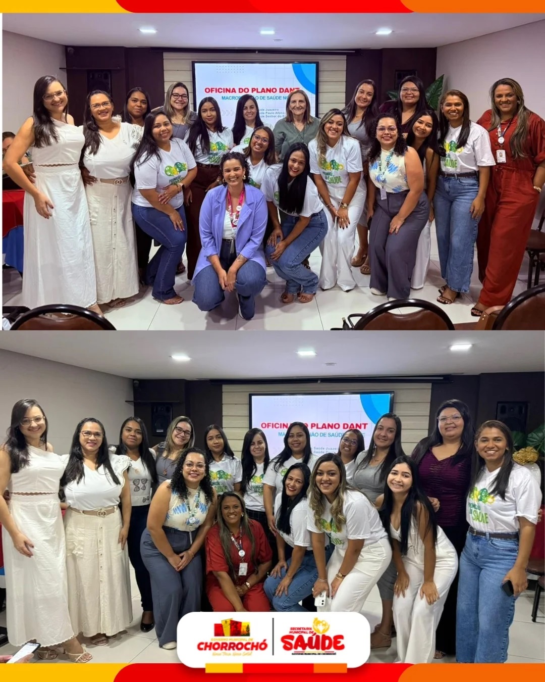 A Prefeitura Municipal de Chorrochó por meio da Secretaria Municipal de saúde,o secretário municipal de Saúde, juntamente com as coordenadoras da APS e da VIEP, nos dias 23 e 24 de setembro,participaram da Oficina do Plano de Doenças e Agravos Não Transmissíveis (DANTs) da Macrorregião de Saúde Norte.O encontro reuniu representantes das Regiões de Saúde de Juazeiro, Paulo Afonso e Senhor do Bonfim, fortalecendo o diálogo e a construção conjunta de estratégias para o enfrentamento e a prevenção das DANTs.A participação do nosso município nesse processo é de grande relevância, pois contribui de forma ativa para a criação e futura implementação do plano, que será essencial na promoção da saúde e na melhoria da qualidade de vida da população.