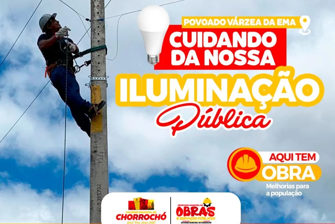 A Prefeitura Municipal de Chorrochó segue firme no trabalho de manutenções da iluminação pública da sede, povoados e distrito do município de Chorrochó,na tarde desta quinta-feira (12/02/2026), a Prefeitura municipal de Chorrochó, por meio da secretaria municipal de obras e serviços públicos deu continuidade a manutenção da iluminação pública municipal chegando ao Povoado de Várzea da Ema. Já foi concluída a manutenção da sede e dos Povoados Caraíbas e Várzea da Ema. Já iniciamos a manutenção no Distrito de Barra do Tarrachil, onde nos próximos dias será concluída e posteriormente iremos fechar em 100 % a iluminação pública municipal no Povoado do São José. Cidade bem iluminada é mais segurança, mobilidade e qualidade de vida!