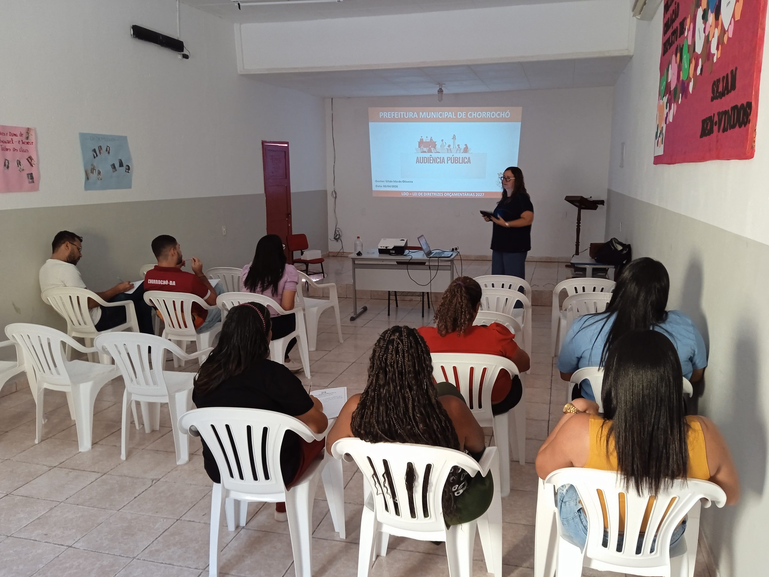 A Prefeitura Municipal de Chorrochó realizou,nesta quarta-feira (08/04/2026),a audiência pública de elaboração e discussão da Lei de Diretrizes Orçamentárias (LDO) 2027.O encontro contou com a presença do Secretário Municipal de finanças Victor Oliveira,servidores públicos e munícipes,com o objetivo de promover a transparência e ampliar a participação da população na definição das prioridades da administração municipal. Durante a audiência, foram apresentadas e debatidas as diretrizes que irão nortear a elaboração do orçamento do próximo ano, incluindo temas como a destinação de recursos e as emendas. A audiência pública foi conduzida pela Senhorita Daniela Coutinho da empresa Conciso Consultoria, Empresa de Contabilidade Pública responsável pelas contas administrativas do município de Chorrochó,que apresentou as diretrizes e metas que irão nortear a elaboração do orçamento municipal para o próximo exercício e destacou a importância da transparência na gestão pública e reforçou que a audiência é um instrumento fundamental de controle social, participação popular e fiscalização da aplicação dos recursos públicos. A LDO é um instrumento fundamental para a administração pública,tem como objetivo estabelecer as metas e prioridades para que o governo municipal possa realizar os serviços necessários à população, estabelecendo regras, vedações e limites para dispêndios, e disciplinando o equilíbrio entre as receitas e despesas municipais. A lei ainda define as regras para a elaboração, organização e execução do orçamento do ano que vem.Este encontro teve o objetivo de disponibilizar à população a oportunidade de contribuir com sugestões sobre propostas a serem alteradas ou incluídas no referido instrumento. Por meio dessa colaboração, a administração municipal poderá elaborar estratégias com vistas a contemplar serviços demandados nos equipamentos municipais, para atender desejos e expectativas dos cidadãos Chorrochoenses.