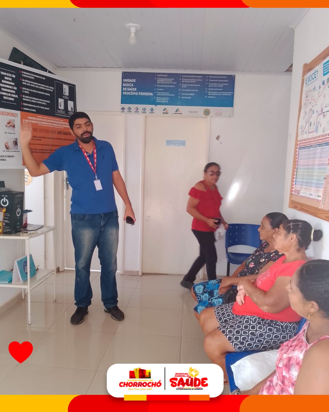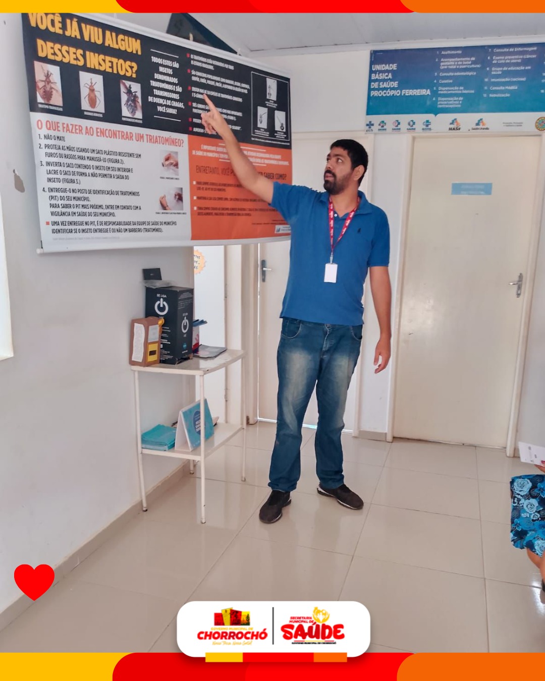 A Prefeitura Municipal de Chorrochó, por meio da Secretaria Municipal de Saúde, realizou,nesta terça-feira (14/04/2026),uma importante ação de educação em saúde no PSF Procópio Ferreira Barbalho no Povoado de São José,município de Chorrochó-BA. A atividade foi conduzida pelo enfermeiro Jael e teve como objetivo orientar a população sobre a Doença de Chagas, abordando sua forma de transmissão, sintomas e, principalmente, as medidas de prevenção. A iniciativa reforça a importância da informação como aliada no cuidado com a saúde, destacando que prevenir é sempre o melhor caminho.